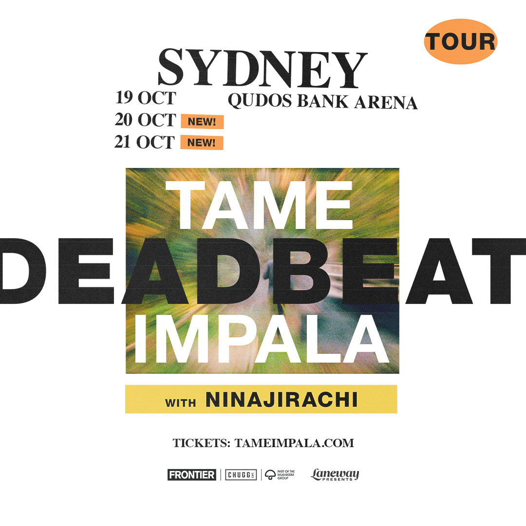 Kevin Parker has emerged as one of the most influential voices of the last decade. Marking a bold new musical chapter, Deadbeat arrived in late 2025 led by three killer singles: ‘Loser’, ‘End of Summer’ and ‘Dracula’ – the latter earning Parker his biggest debuts yet at US radio, and landing in at number three on this year’s triple j’s Hottest 100, almost 20 years since Tame Impala’s first appearance in the poll. As a newly six-piece touring band, Tame Impala kicked off the Deadbeat tour with 12 sold-out shows across North America last October and November, with a UK/European tour set to begin this April. From July, Tame Impala will return to the USA and Canada, kicking off a huge area run featuring guests Djo and Dominic Fike.