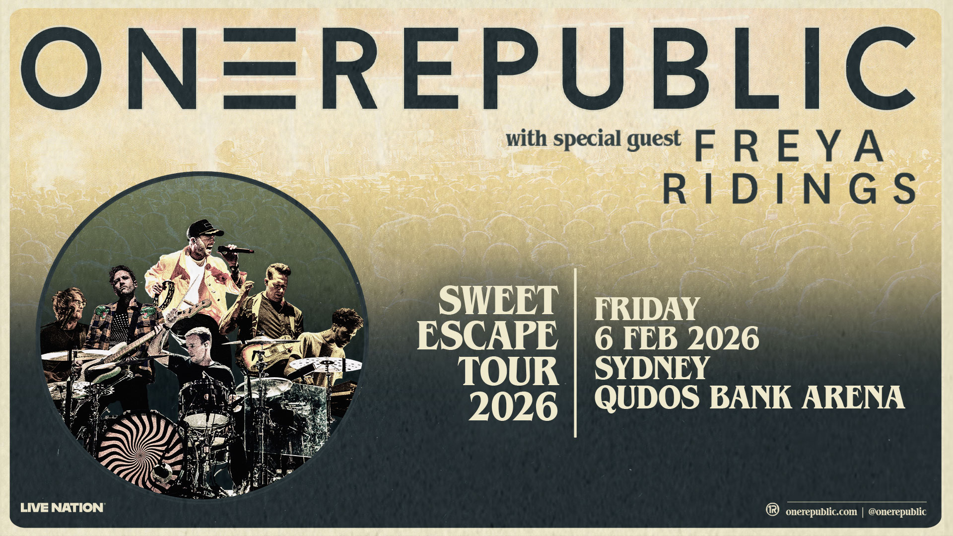 Global hitmakers OneRepublic bring their anthemic sound to Sydney for one unforgettable night at Qudos Bank Arena on Friday 6 February 2026. Known for chart-topping favourites like “Counting Stars,” “Apologize,” and “I Ain’t Worried,” the GRAMMY® nominated band promises a high-energy performance packed with soaring vocals and stadium-ready hits.